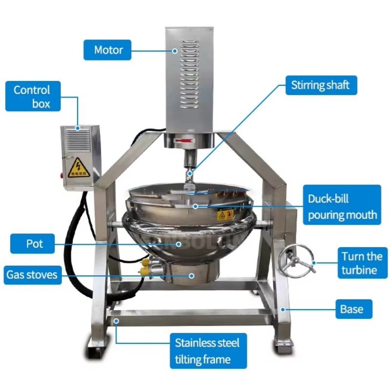 Steam-Heated Jacketed Kettle: A double-layered industrial heating system using steam for conduction/convection heat transfer. Featuring SUS304 stainless steel, it enables energy-efficient, safe heating, steaming, and sterilization in food, pharmaceutical, and chemical industries.