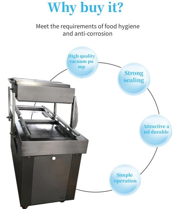 | Model | Size(mm) | Seal length(mm) | Vacuum chamber size(mm) | Power | Packaging capacity | Weight |