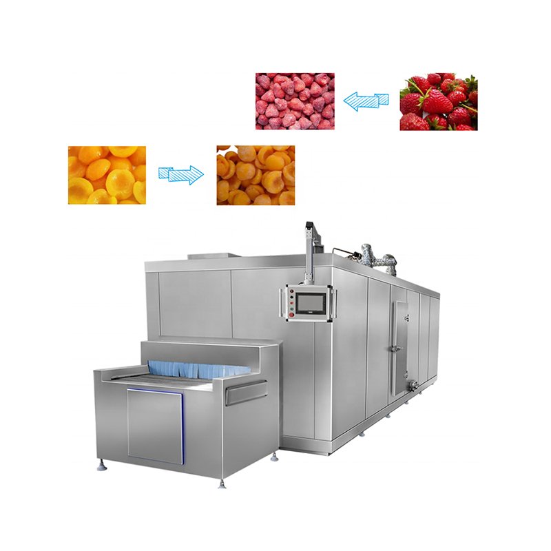 A tunnel freezer is a high-tech, continuous, rapid freezing device that integrates refrigeration technology, mechanical manufacturing, and food processing techniques. It simulates a tunnel structure, allowing food to continuously move along a conveyor belt, rapidly passing through a freezing zone at -35°C or even lower in a very short time, achieving a transition from room temperature to a deep-frozen state. This "freeze-as-you-go" continuous operation is a key component of high-efficiency, high-quality production in the modern food industry.